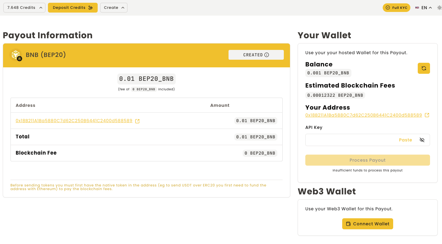 Efficiency Tip: Batch multiple payout requests together to minimize blockchain fees and streamline your payment operations.
