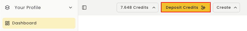 Locate and click the Deposit Credits button in your Profile settings.